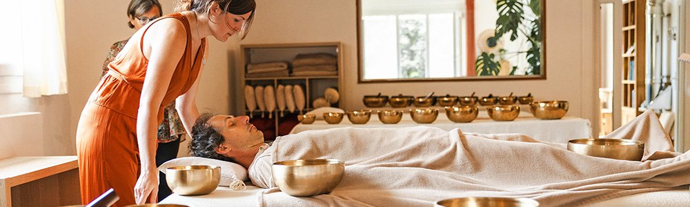 La formation aux bases de la sonothérapie se focalise sur l’usage de 2 à 4 bols tibétains pour la relaxation sonore (séances de groupe) et le massage sonore (soins individuels). Si vous souhaitez découvrir cette pratique en tant que professionnel de la santé ou du bien-être, dans l’optique éventuelle de l’intégrer à votre pratique existante, voilà des bases solides pour commencer. Libre à vous d’approfondir par la suite au sein d’autres formations.